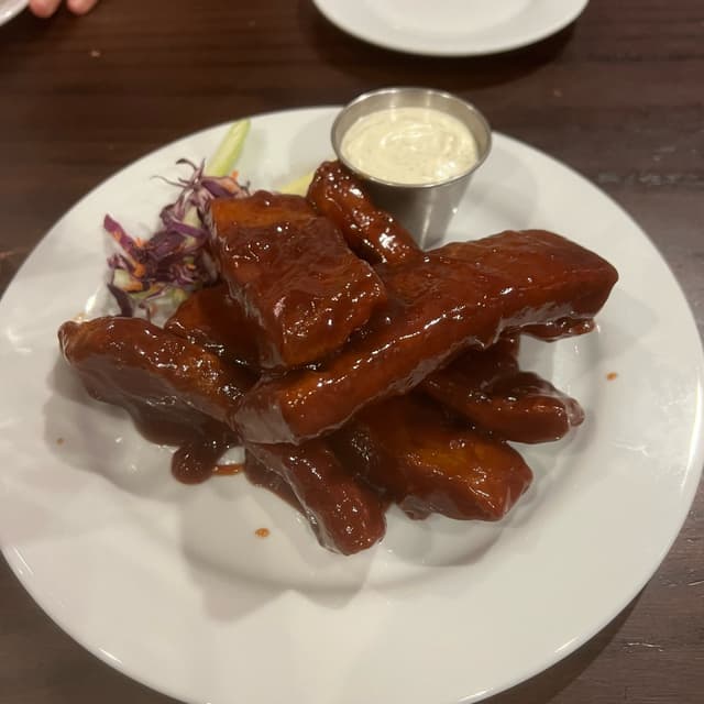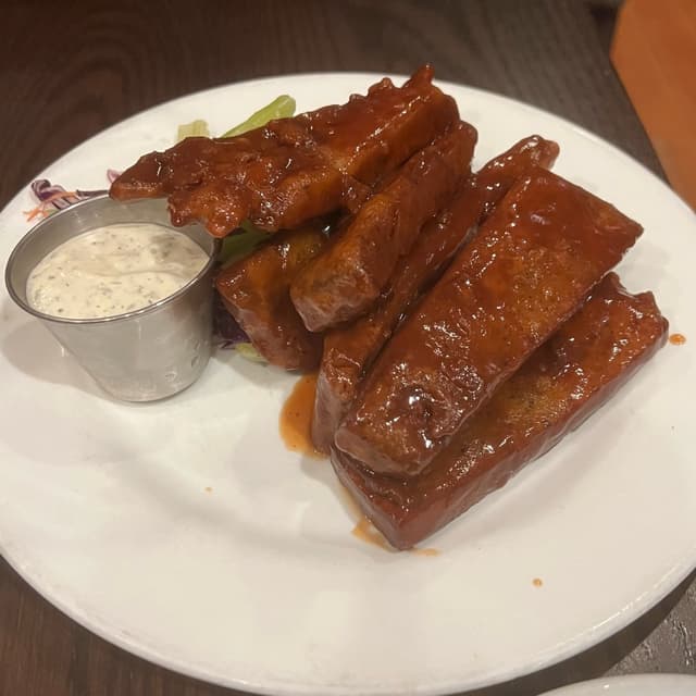 some of the best vegan wings for sure!! i came specifically on “wing tuesday” (wing discount day) to get these wings and i am glad i did. i’ve had the seitan wings before and will add they vary slightly depending on the day, but these wings were tender on the inside with a crispy exterior. they were easy to bite into and chew and weren’t tough, rubbery, or chewy as some seitan tends to get. the bbq sauce was also amazing! i love the bbq sauce they use at the diner. i will say these aren’t going to taste exactly like chicken wings, and they are not pretending to be exactly like chicken wings- but they are delicious how they are, and they are some of my favorite seitan wings ever!