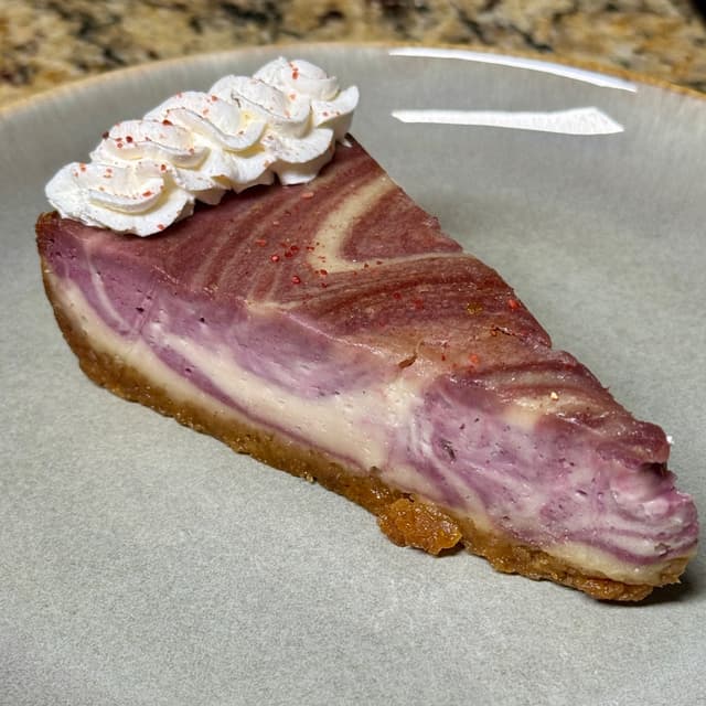 Strawberry cheesecake is typically not my favorite flavor, but omg this was amazing!! The strawberry was blended throughout, but wasn’t too overpowering or too sweet. The texture was absolutely spot on, and the graham cracker crust was buttery and crumbly. I wish I got 2 slices! #cheesecake #vegancheesecake #cheesecakelover #strawberry