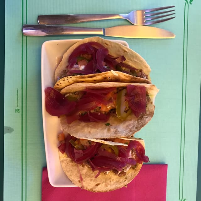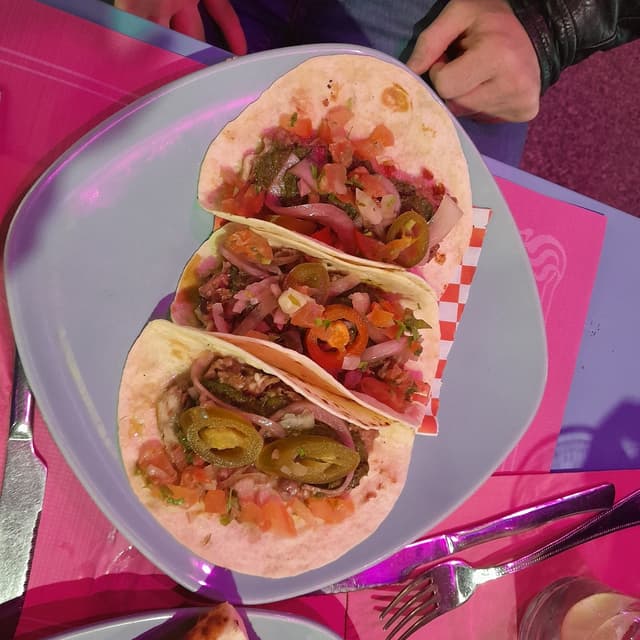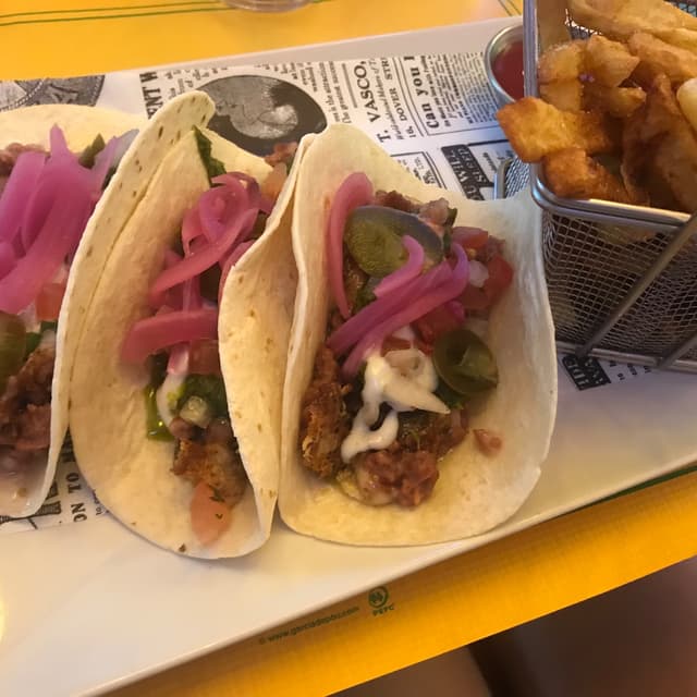 Me gusta absolutamente todo lo que ponen en este sitio y los tacos no son una excepción. Me encanta que los acompañen de patatas fritas.
