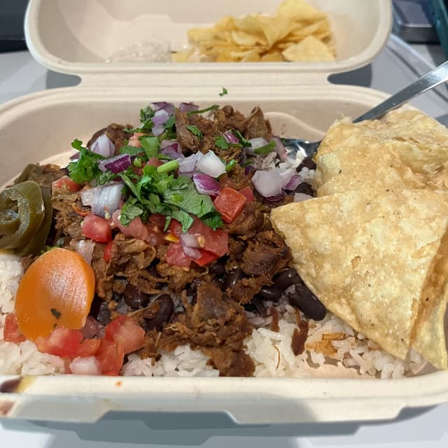 Did a double take on this one. The pulled shiitake mushrooms had an eerily meaty texture. It was pretty good nonetheless. Remember to take out the cheese. #veganise #burritobowl #rice #shiitakemushrooms #shiitake