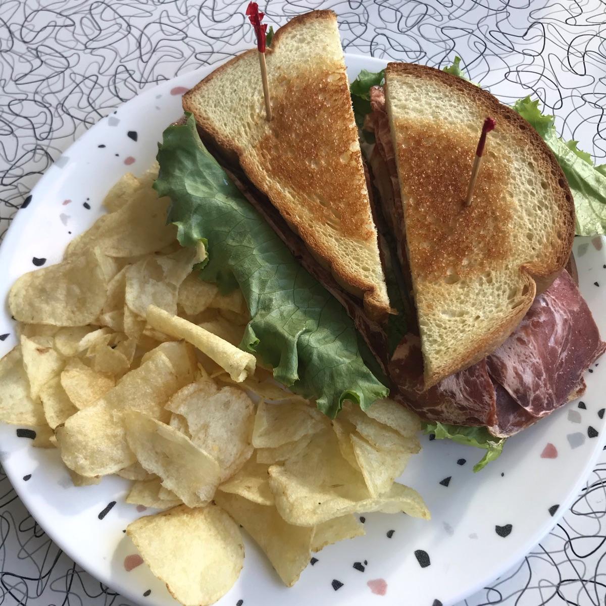Like a BLT, but vegan! I came here 2 days in a row because the food was so incredibly delicious. The bread was buttery and the ‘bacon’ was perfectly salty. I would absolutely buy again.