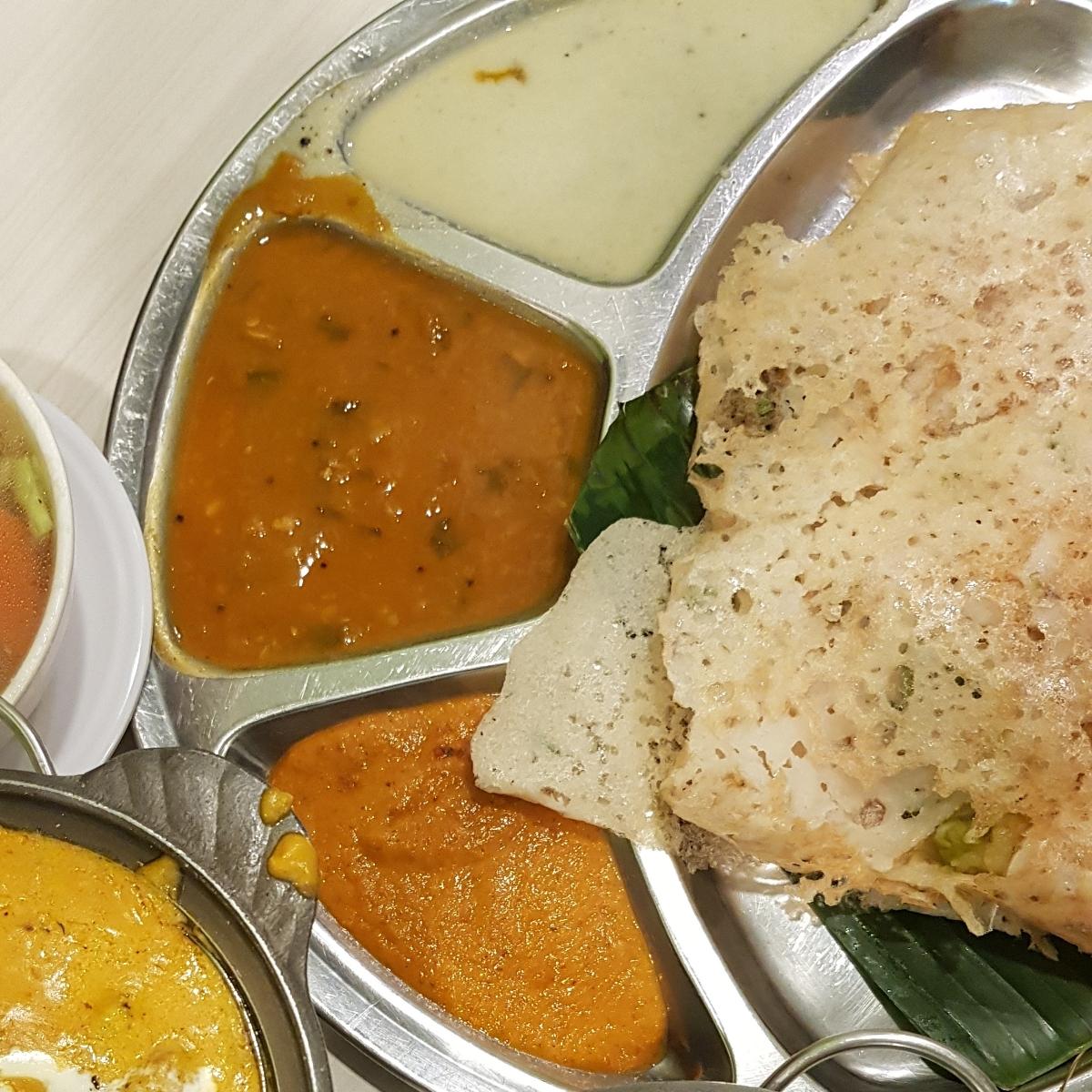 Thosai stuffed with mashed potatos. A bit too spicy for me but really tasty dips.