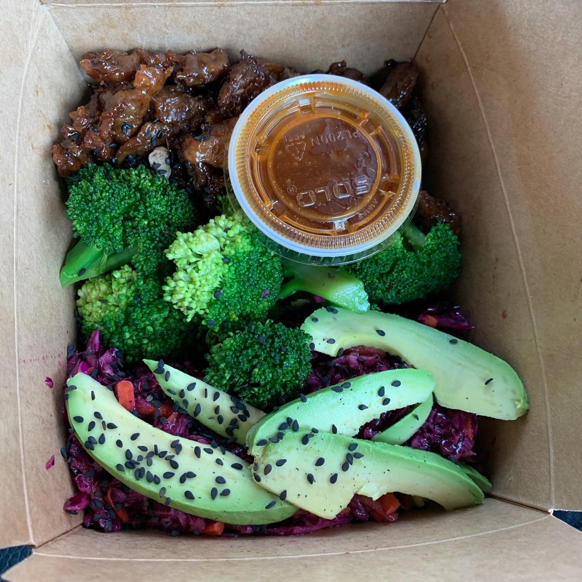 So expensive! Loved the avocado, included these clear noodles I’ve never seen before which were nice, cabbage, broccoli which were kind of hard, carrots, and faux chicken. Flavours worked well together; enjoyed by a non-veg