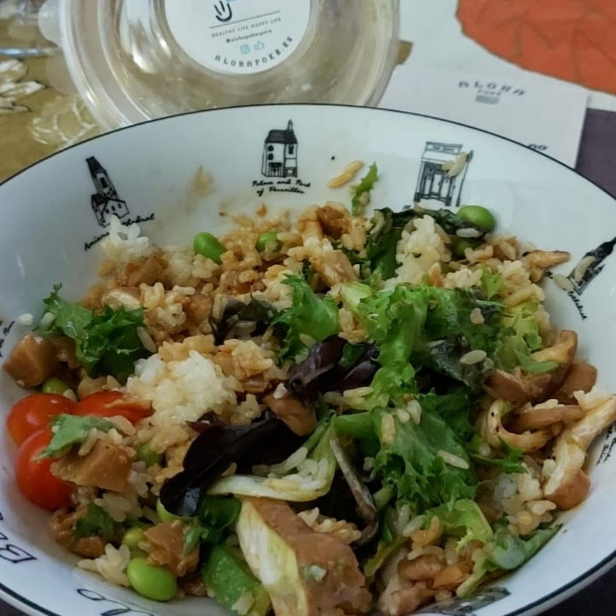 Plato vegano muy rico con heura verduras y una salsa de soja muy bien aliñada. Lo pedí a domicilio