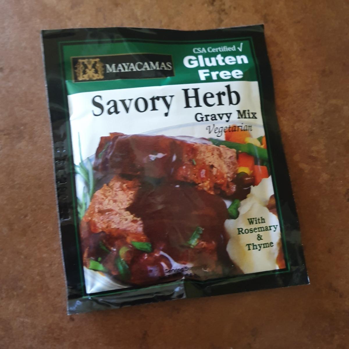 Delicious dark brown gravy with savory herbs. Amazing on mashed potatoes and vegan meatloaf