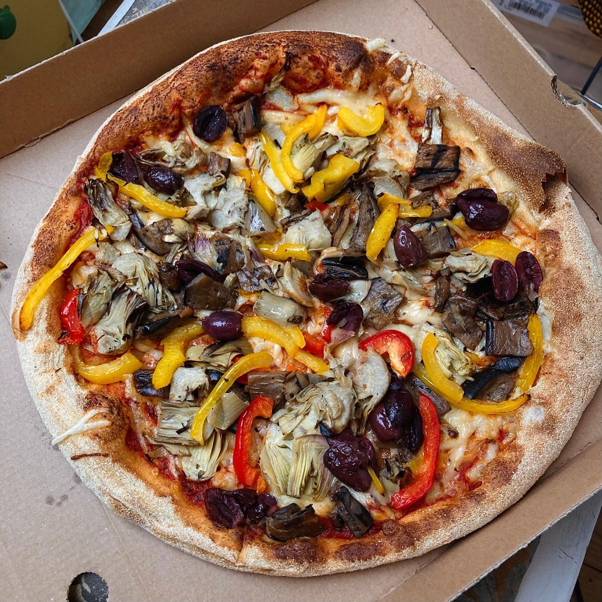 Probably the nicest pizza I’ve tried from Pure Pizza, a reeeaaally generous amount of toppings (not a load of actual aubergine because I suppose it would be too soggy, but the olives and artichokes were more than welcome.) The vegan cheese they use is really nice too, and the base is doughy and fresh