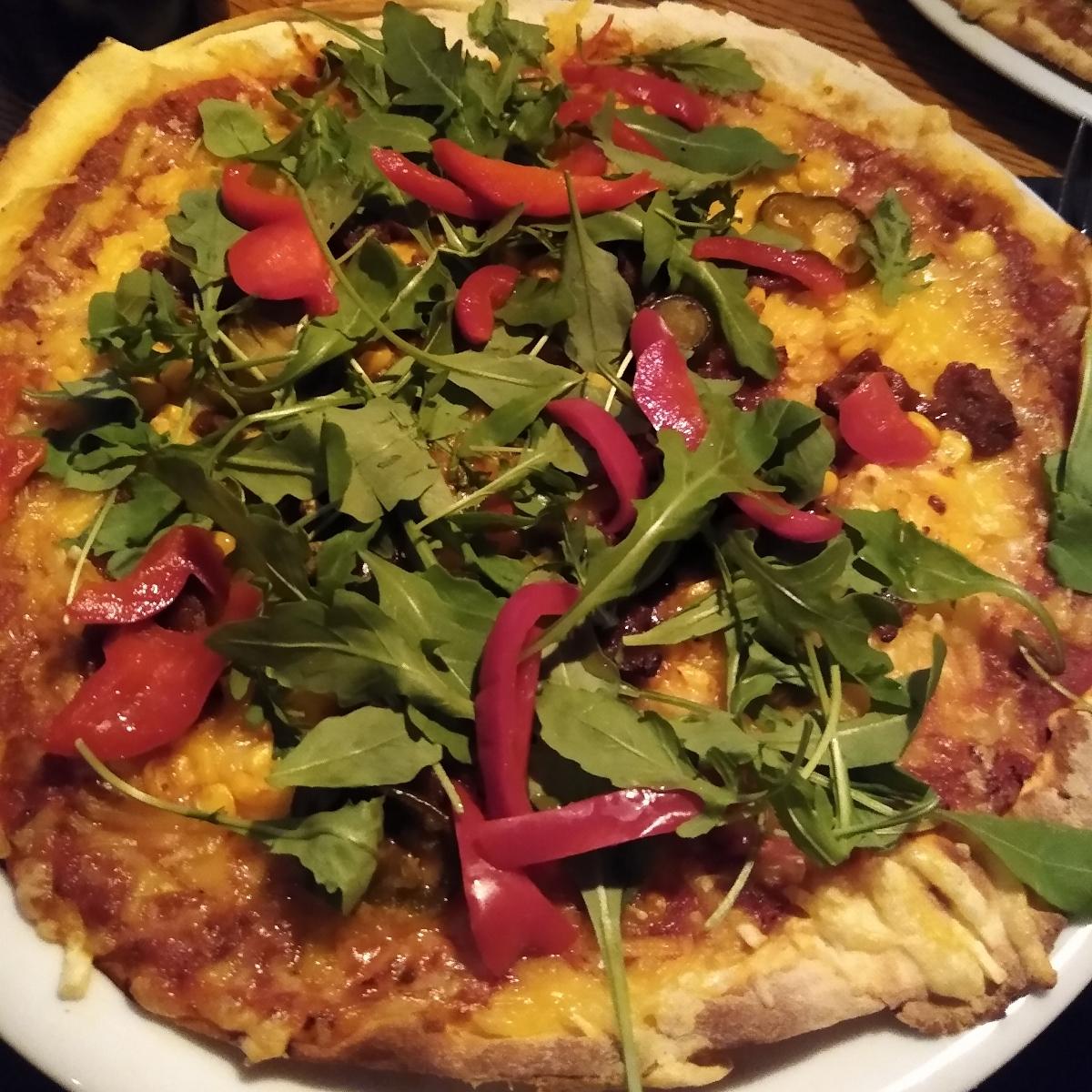 This restaurant-bar has the UK theme, therefore the food names are given accordingly. My favourite pizza title is Brexit, but that's not vegan. 😒 Well, they have Meghan, that rhymes with vegan. It has seitan slices, jalapeno, paprika, sweet corn and a looot of rucola on the top. It's quite delicious but not exactly what I want from a pizza. The place has a good reputation for its food, but each time I have to wait more. This one took a bit more than an hour to come. Understandable when many orders from home and they have to prepare a load, but one hour is too much to wait. There should be a limit to it.