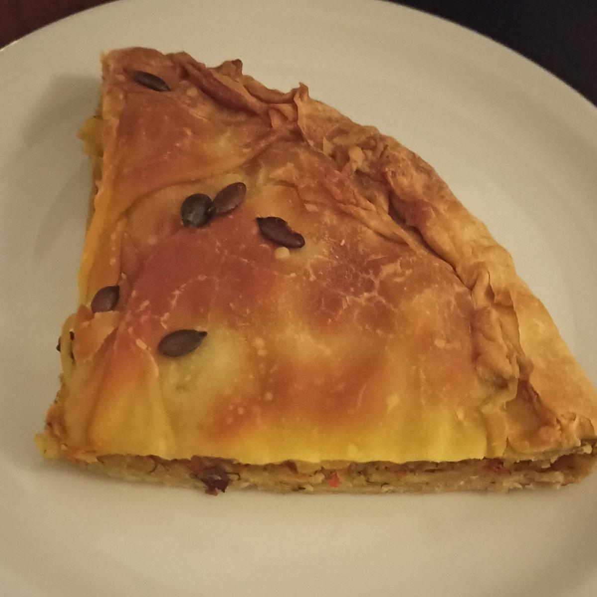 (En) Delicious pumpkin pie, with a relatively thick rustic sheet. Rich in taste with red pumpkin, pumpkin seeds, dill and carrots!