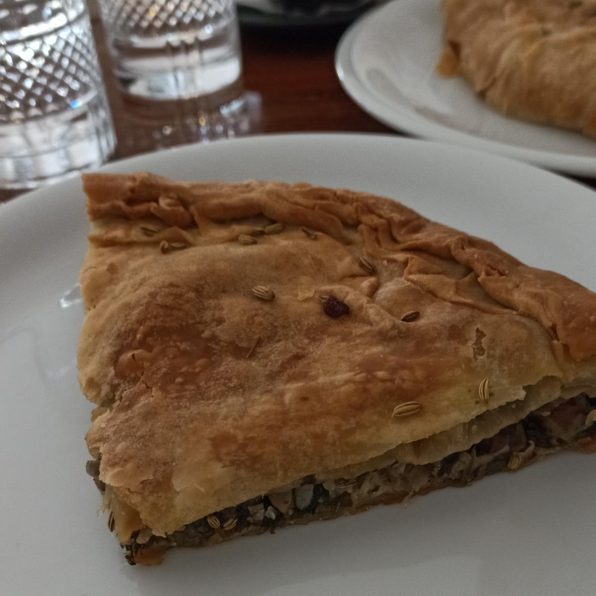 Very nice pie, with white beet, raisins, herbs, fennel and sunflower seeds!