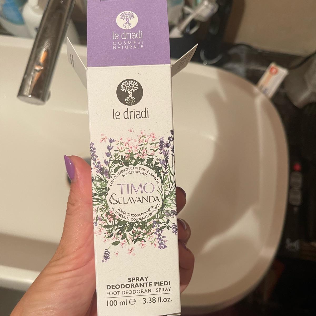 Deodorante per i piedi con oli essenziali di timo e lavanda.
