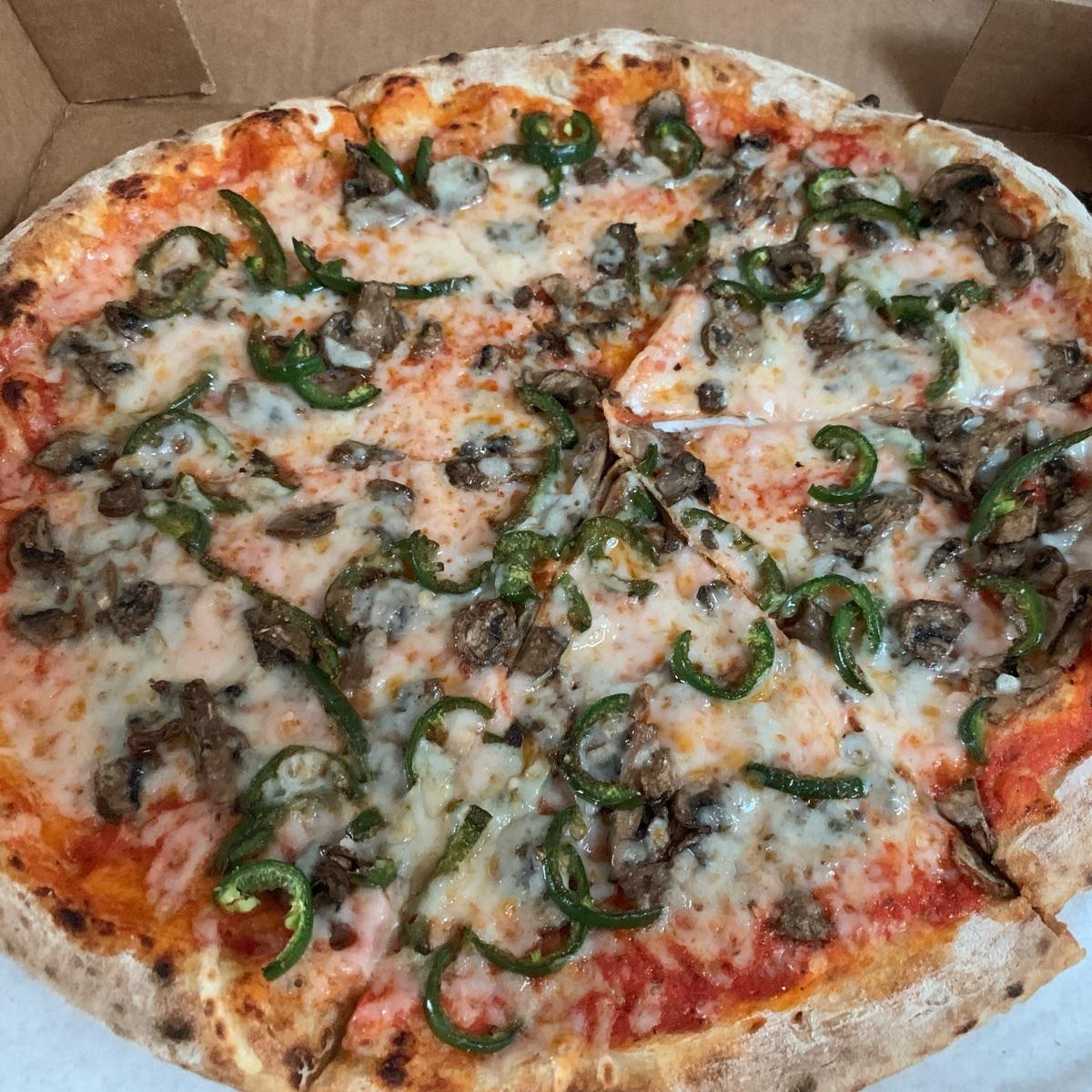 Wonderful pizza. Nice crust, great sauce and melty vegan cheese. Tons of toppings—we went with mushroom and jalapeño. #uplandspeak