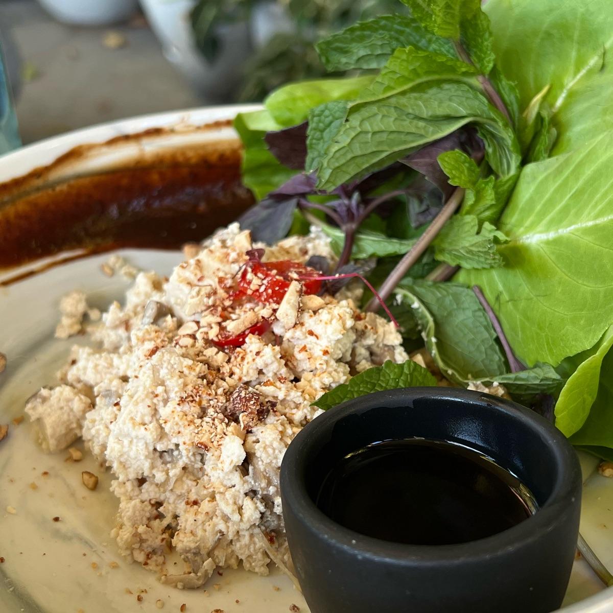 Local lettuces, tofu, fermented black beans, pickled red chili, housemade fish sauce, lime leaf, sriracha cashews, mint, cilantro + thai basil