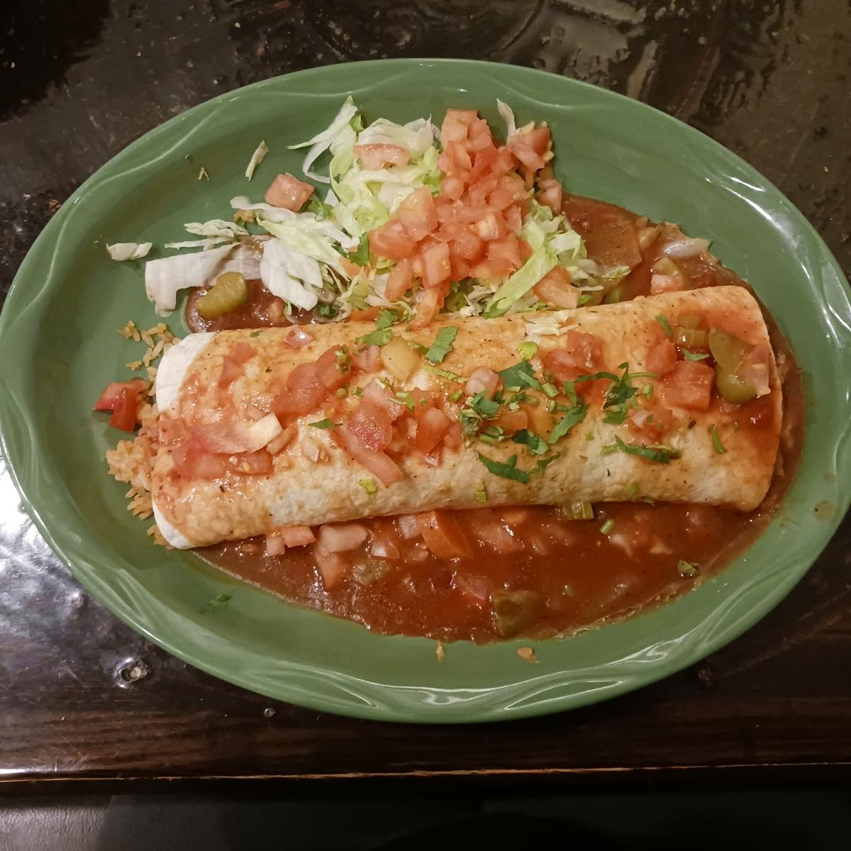 This burrito is at least 3 meals worth. It is stock full of veggies, including mushrooms, onions, and peppers. The red sauce is flavorful but not spicy. #veganburrito