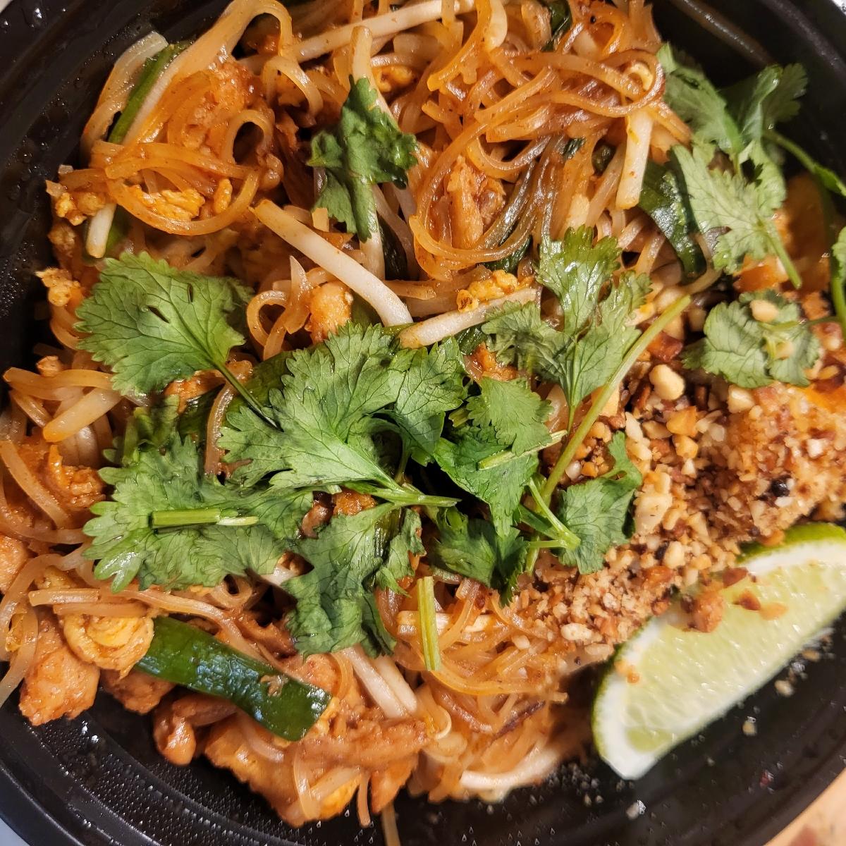Tasty and flavorful pad thai. I liked the thin noodles. Came with soy curls and tofu, though there wasn't a lot of each.