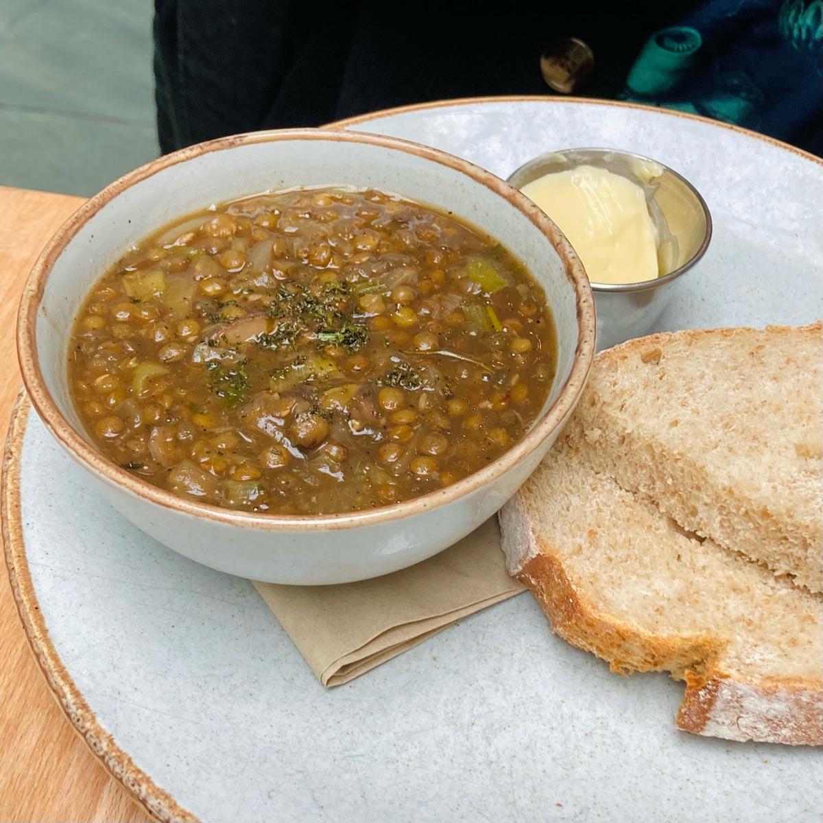 No exaggeration - this is one of the tastiest bowls of soup I’ve ever eaten! It was rich and hearty, the stout really amped up the flavour, and the level of salty savouriness that I really enjoy. Very filling and satisfying. SOUPER-DUPER #vegansoup #lunch #veganlunch #cafe #vegancafe #soup