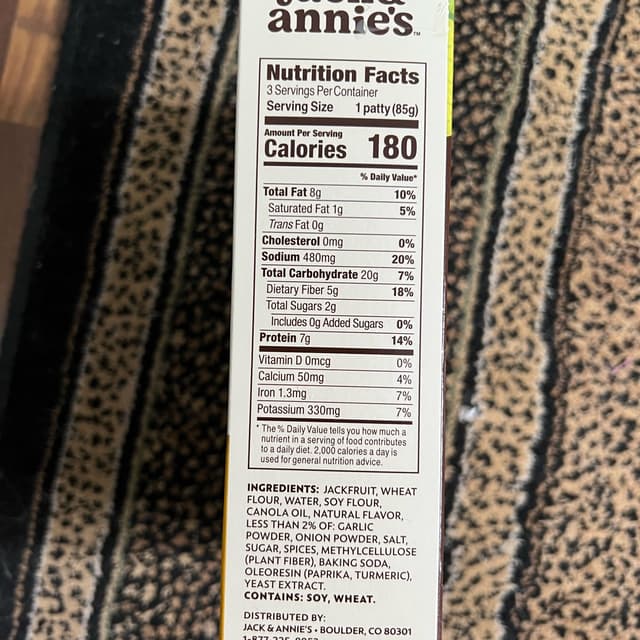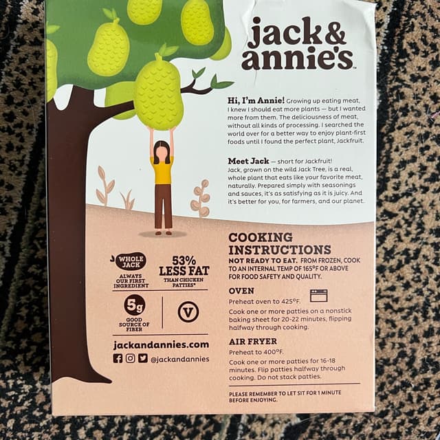 This a very nice vegan burger option! The outside is definitely crunchy when you cook it in the air fryer and the inside stays moist. I used a bit of ketchup with it but it is not needed. 180 calories is not bad but a pattie does have 8 grams of fat and 7 protein. #jackandannies #jackfruit