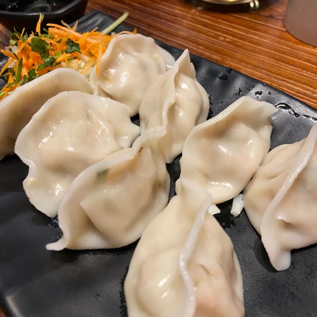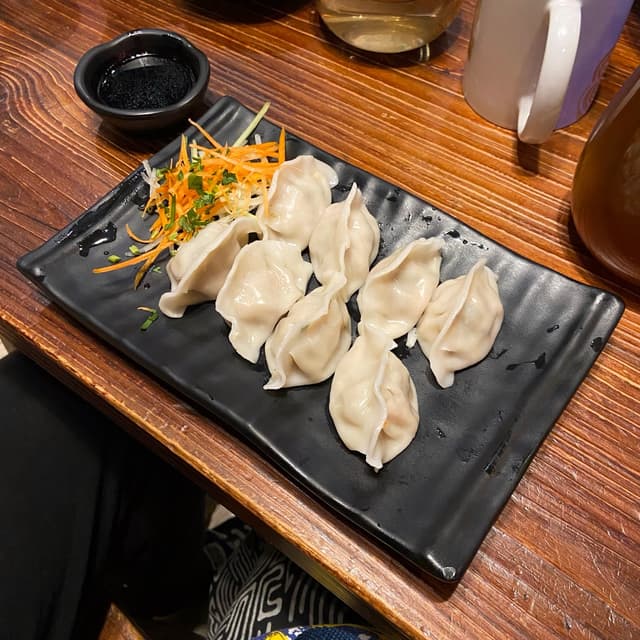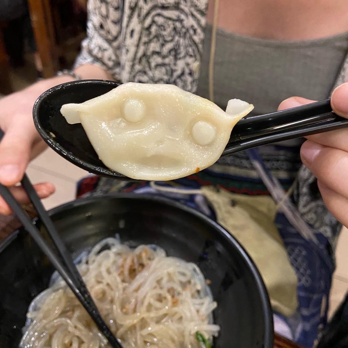 The only acceptable face on your food 😤 Because anything else is murder 😉 #govegan 🌱 This lil fella was @waterlily’s rancid #dumpling friend. A little #toocutetoeat maybe, but we persevered 🤭 The poached ones are recommended to their fried #dumplings for some reason according to their menu 🤷♀️ I guess they’re a lil less oily and sticky? Anyone’s guess I guess, they were pretty great 😋