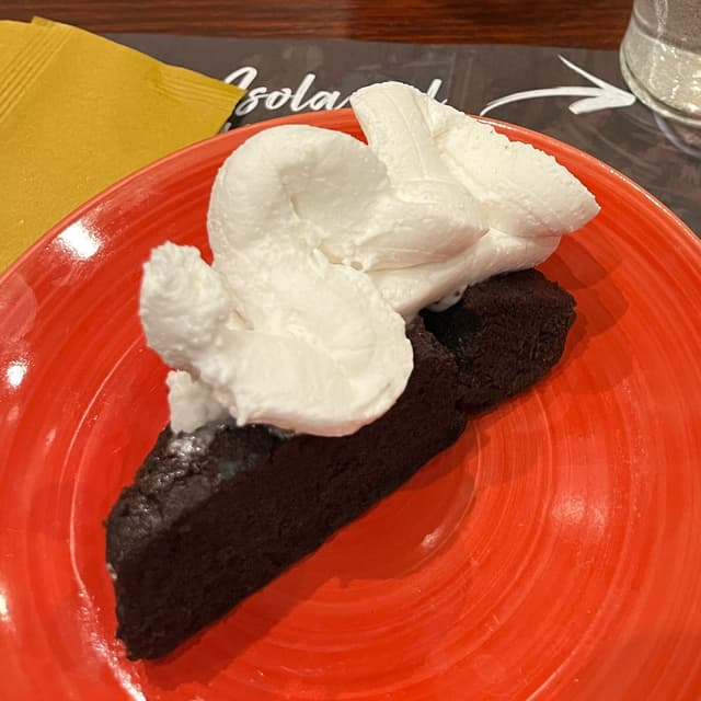 Squisita torta, servita ancora calda in contrasto con la crema fresca 🍫