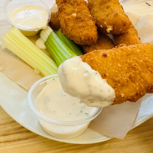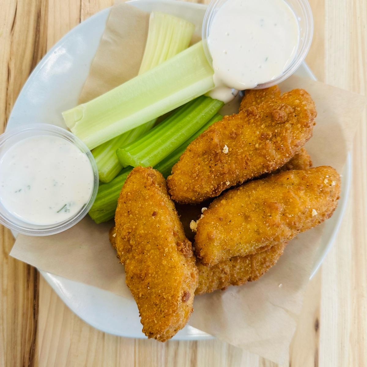 Simple and satisfying tender chick’n and surprisingly refreshing celery is a good snack.