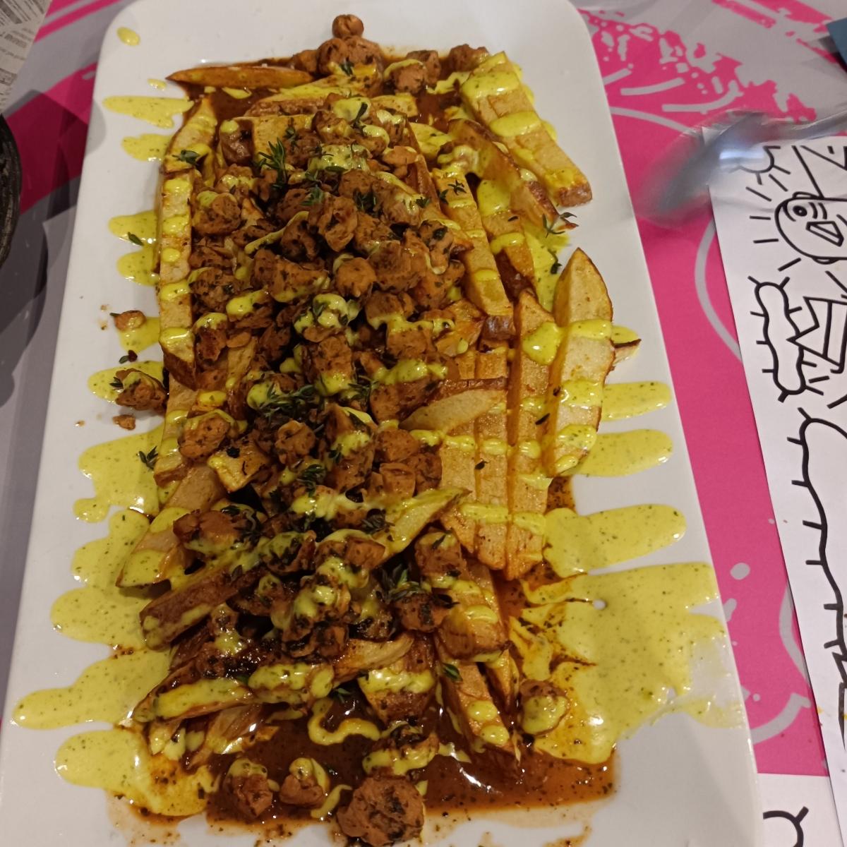 Me gustó mucho, la salsa estaba muy rica, las patatas estaban de vicio. A pesar de que me picaba un poco, comí hasta que me dolía la barriga 😂