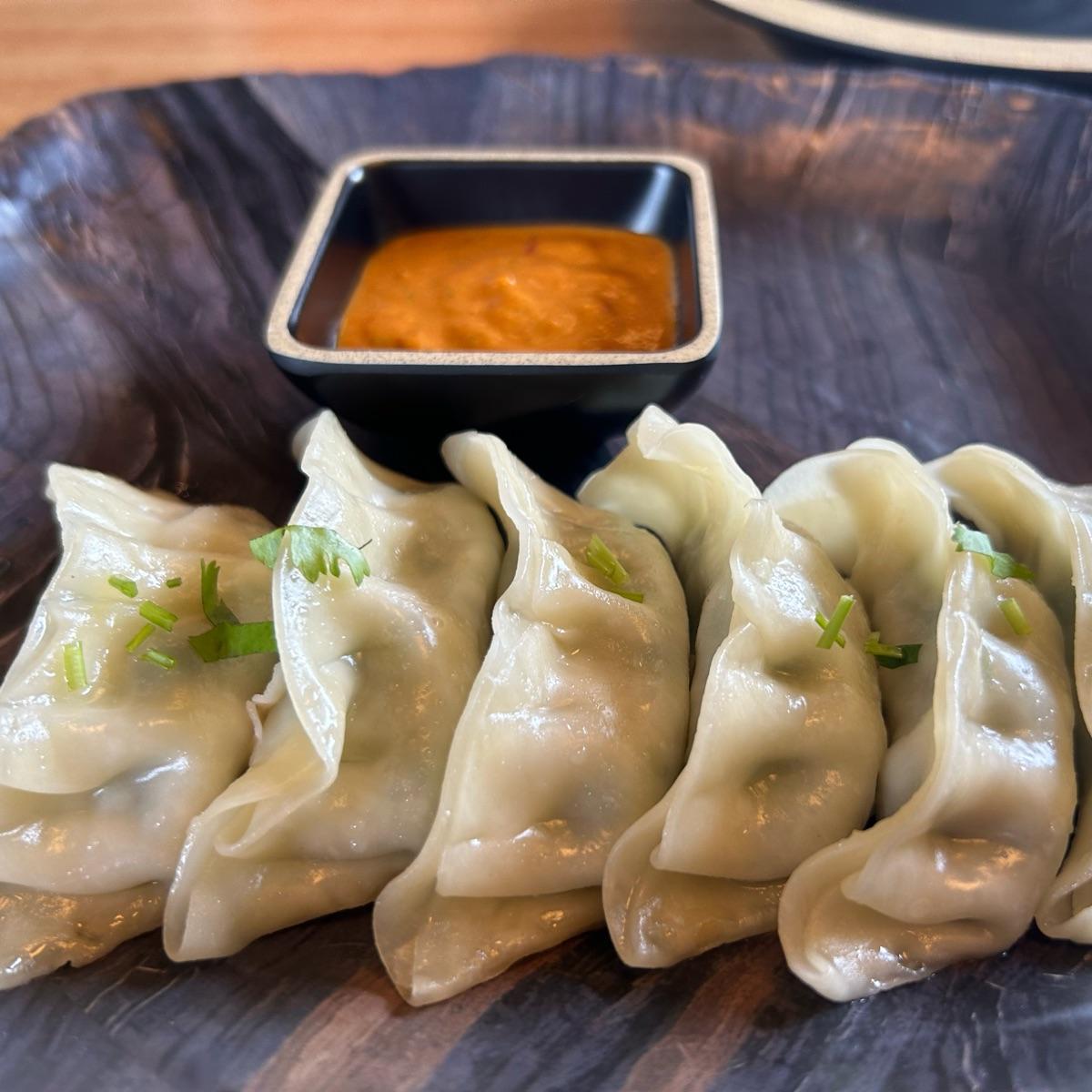 The menu says #dumplings of #himalayan origin. So idk what #veggies they had inside but they were incredibly delicious and they came with this amazing sesame-tomato #chutney