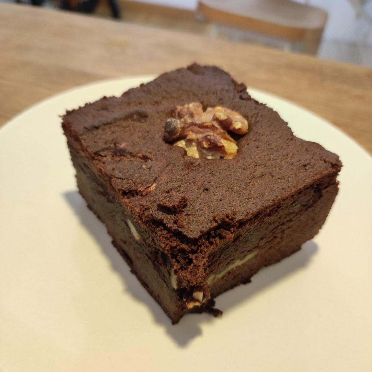 An excellent brownie, soft and tasty with a crunchy note. The nuts on top Is a genius touch