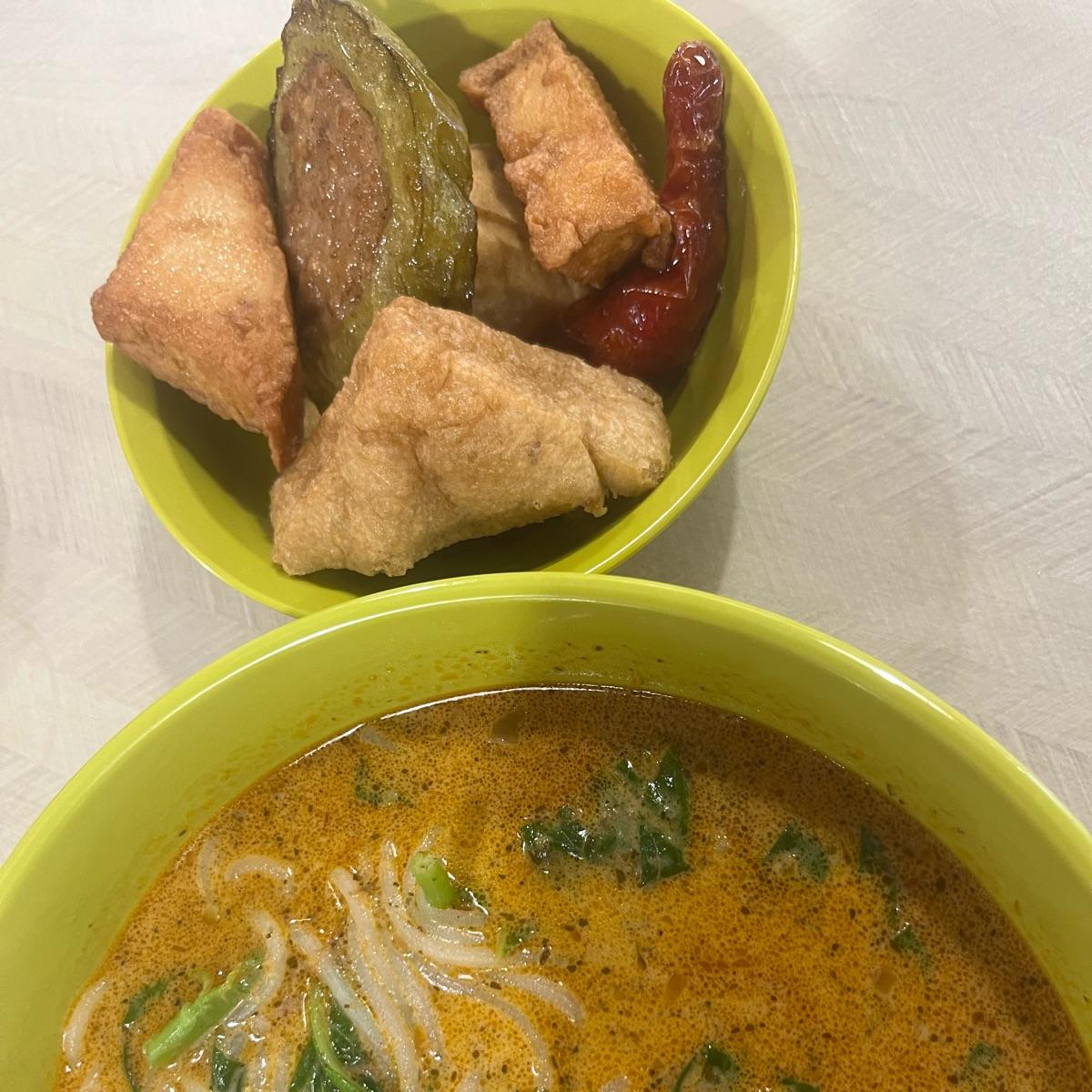 The #laksa gravy was not too spicy. Just the right amount of #lemak and came with generous portion of Chinese #spinach . #yongtaufoo pieces included stuffed #taukwa , #chilli , #bittergourd , #jadetofu and #tofupuff .