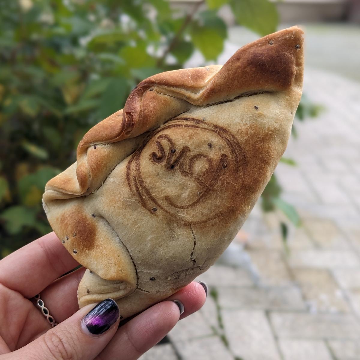 This is another great savory option! It has Cuban style shredded jackfruit that packs a lot of flavor. It's in a chia seed dough. They use jackfruit really well here. It's marinated nicely and makes a great texture of the empanada filling. Again, great with garlic sauce! I think this is another popular flavor. Definitely a good classic pulled "pork" type empanada.