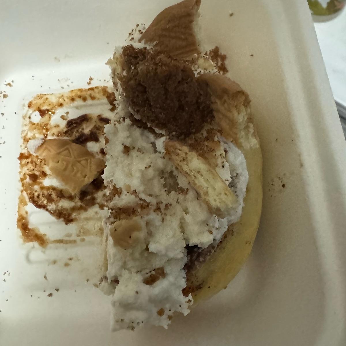 My partner ordered this #vegancinnamonroll. It had a few different kinds of cookies and #maple #frosting. I liked it and the maple icing was my favourite part of it.
