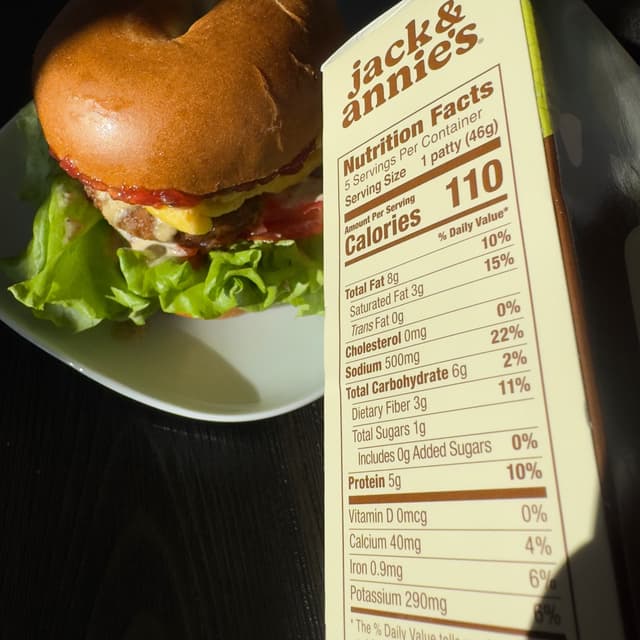 Great source of protein and fiber. High in fat and saturated for just one patty. The sodium is also quite high for my liking, but definitely the perfect cheat meal!
