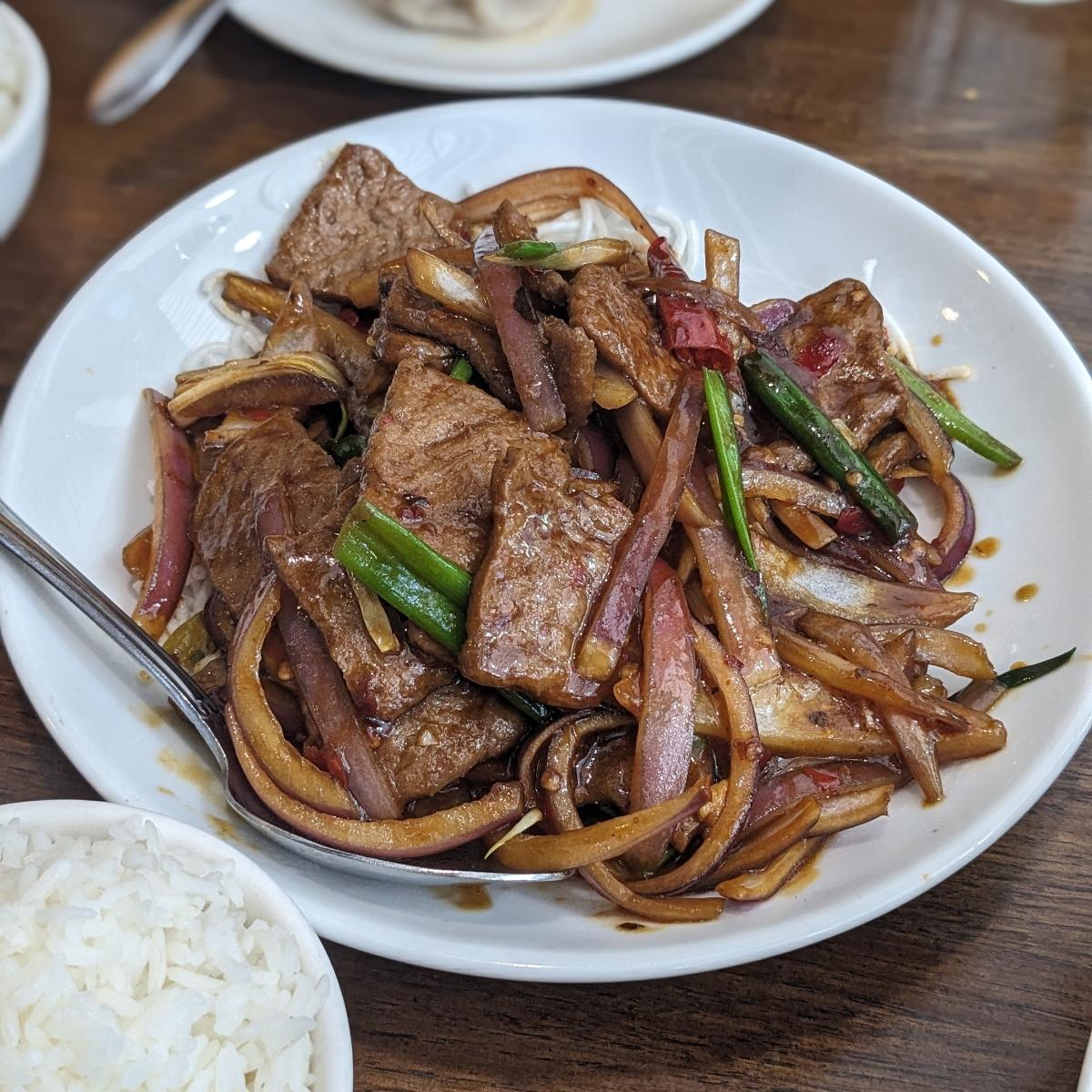 The soy beef here is so good! I really liked the broccoli soy beef when I was here last, so I thought I'd try the Mongolian soy beef this time. I love the generous amount of onion that came with this. It was in a delicious, flavorful sauce. It also came with some chilies, signaling some spice! It had a little kick, and you can ask for it spicier if you'd like. It was very manageable with the regular amount of heat though.