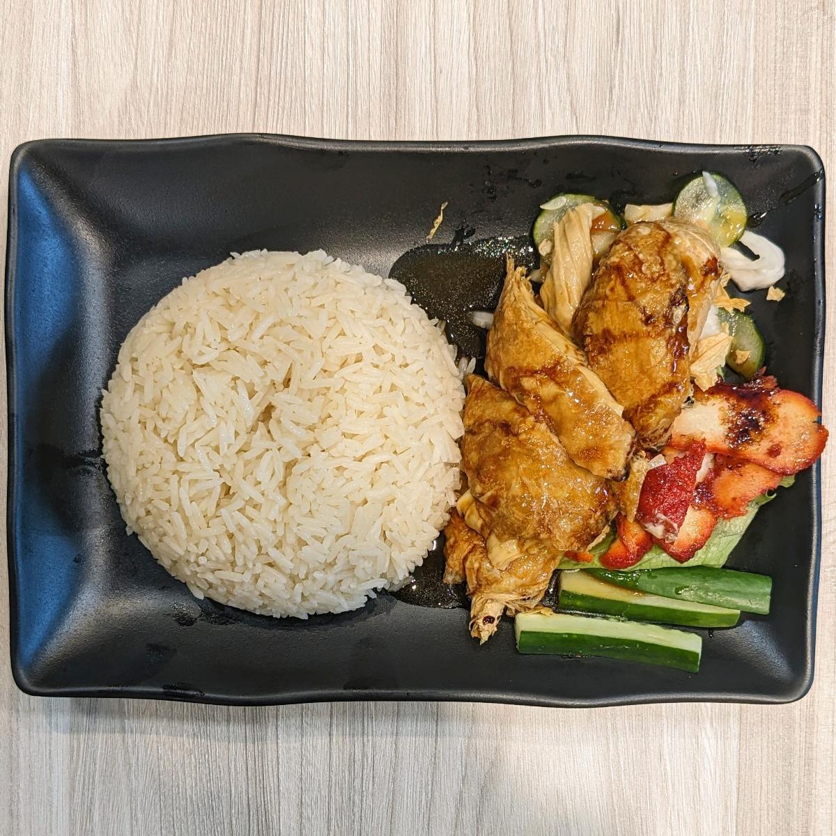 鸳鸯饭 Featuring a combination of roasted yuba beancurd skin 'chicken' as well as charred smoky seitan 'char siew' (albeit with a rather strong mock meat aftertaste that I wasn't a fan of). 🍗🥓 The sesame rice was fragrant and not too oily. Came with cucumber sticks, plus achar-like pickled cabbage and carrot. 🥒🥬🥕 Served with a tasty bowl of clear soup too. 🍲 Overall nice though not particularly outstanding in my opinion, since similar chicken and/or char siew rice dishes are aplenty in Singapore; regardless this was a wallet-friendly option in town~ P.S. There's also Roasted Chicken Rice 烧鸡饭 (i.e. without the 'char siew') available at $5.50! (Allium-free, $6.80) #sgvegan #chinesefood #alliumfree