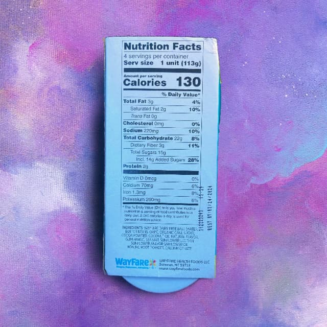 One (113g) cup provides 130 calories from 3g of fat (2g of saturated fat from coconut), 22g of carbs and 2g of protein. Each package comes with four individual serving cups.