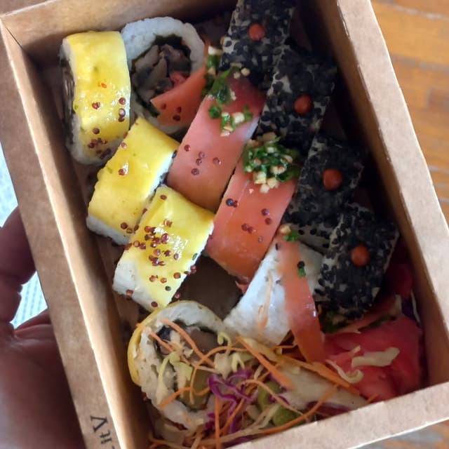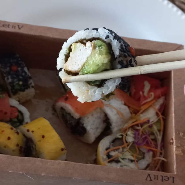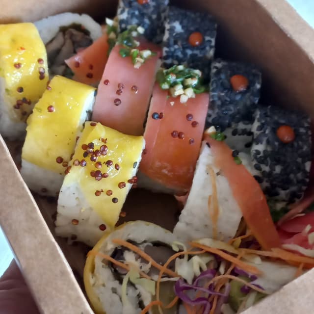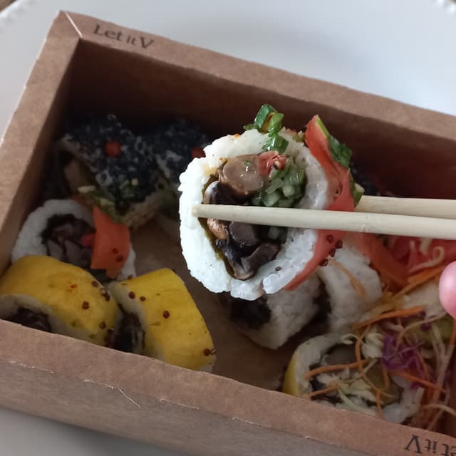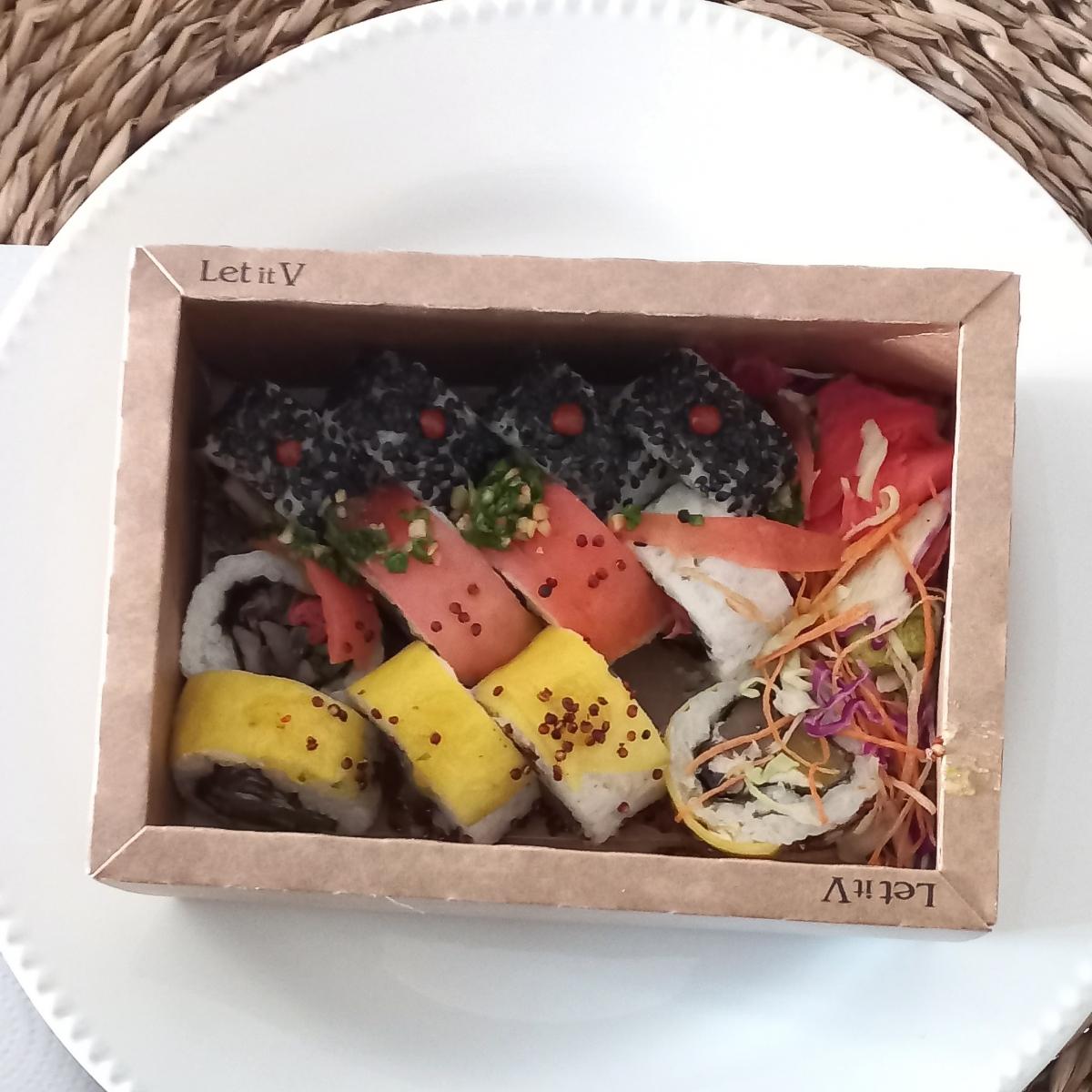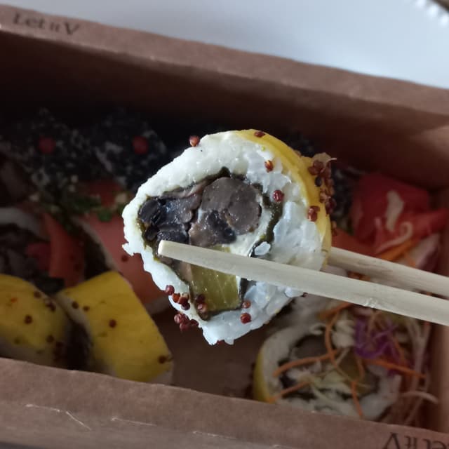 Que locura este sushi por Dios! Amo amo let it V! Sushi de hongos con palta, anana, tofu, mango, jengibre, una delicia ! Orgasmico! Gracias! 🌱💚💚
