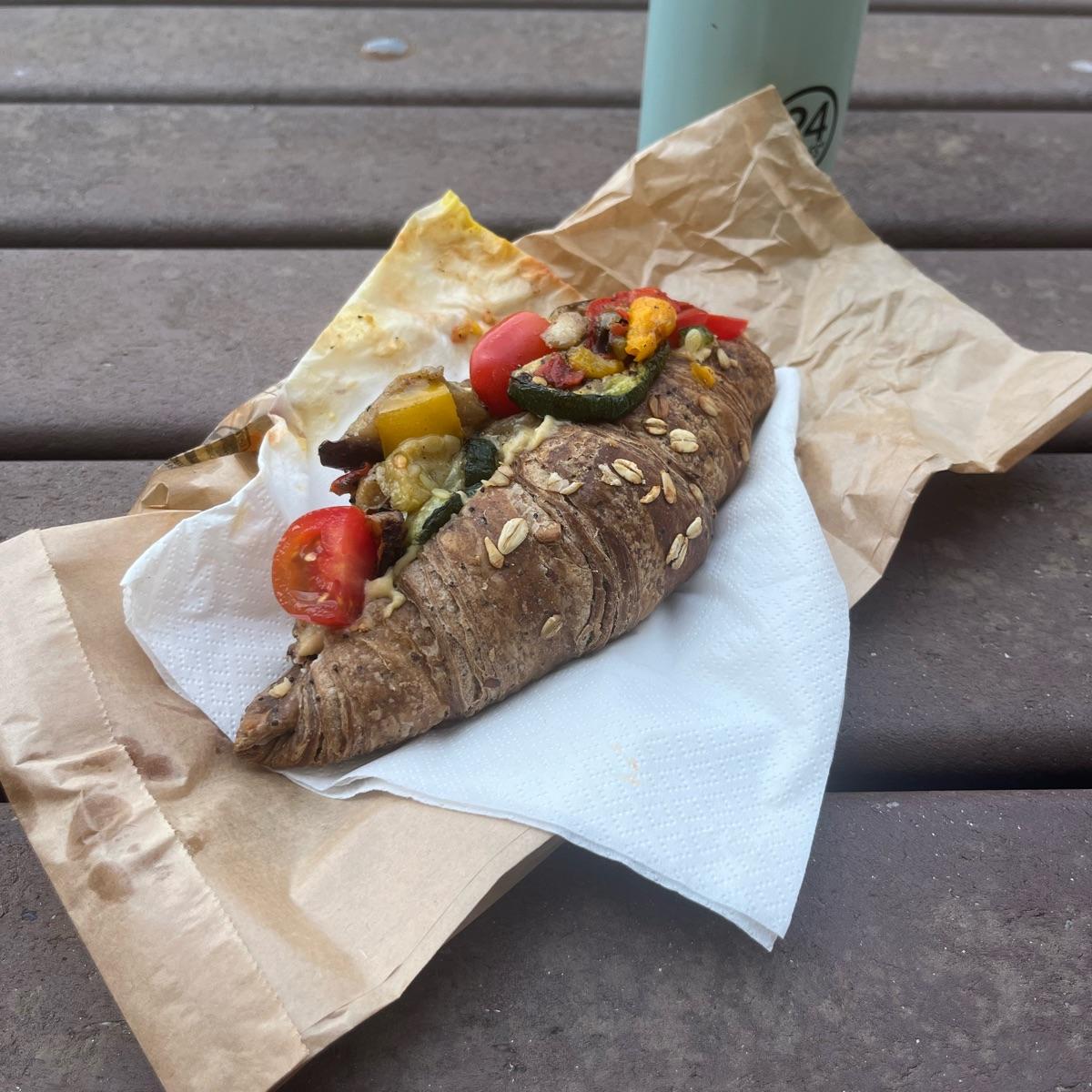 Questa brioche integrale salata mi è stata fatta al momento su richiesta: mi è stata farcita con hummus e verdure. L’ho trovata davvero ottima.