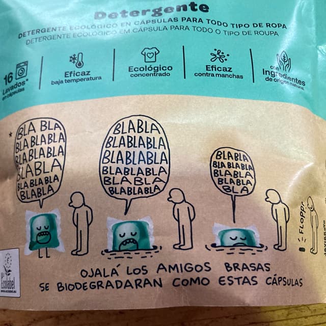 Detergent washing clothes . 16 capsules for 4.60€ not as pricey as the strips . These are biodegradable in a paper bag . No plastic at all 😊