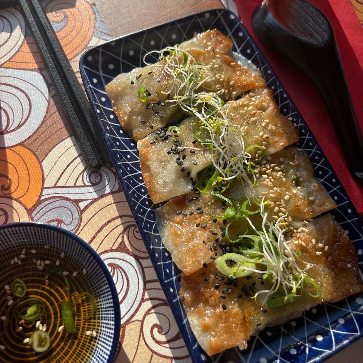 amazing gyoza!! crunchy and soft at the same time and the dip was super delicious as well. i just found them to be quite expensive at €7.5