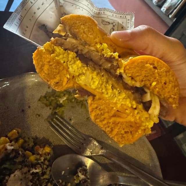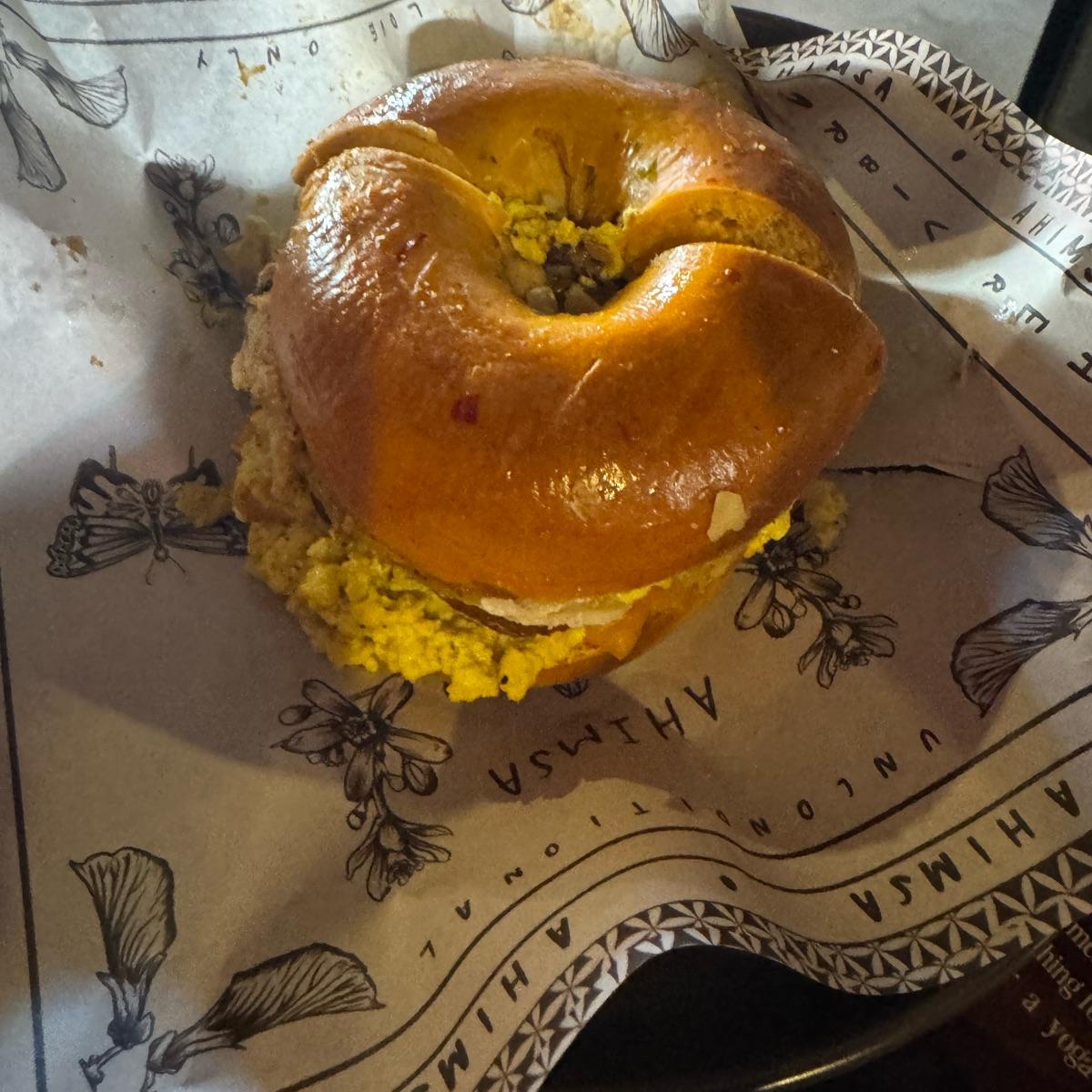 The bagel was chewy and can get quite messy to eat if not using fork and knife. Tofu was quite moist which was a plus. Chose the jalapeno bagel (not sure if I can taste it). The cheese didn’t really melt. The tempeh slices were thin but could still make out the taste of it, it isn’t too bad. No complaints and it’s a satiating bagel!