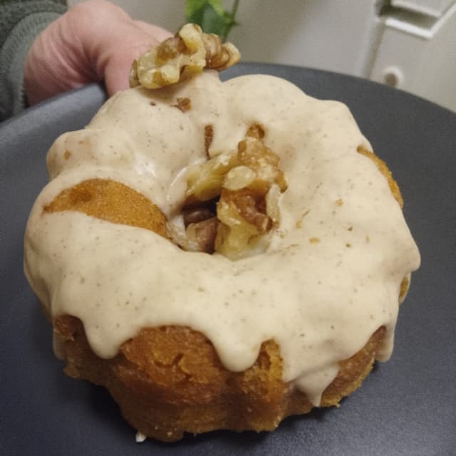 #organic #pumpkinspice mini bundt cake drizzled with #cinnamon spiced icing. Topped with chopped #walnuts. It was delightful :)