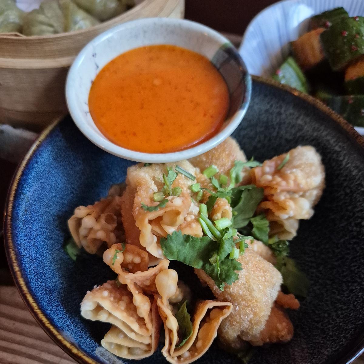 Deep fried wontons with tofu, served with a chili mayonnaise sauce. Amazing texture and really good flavors!