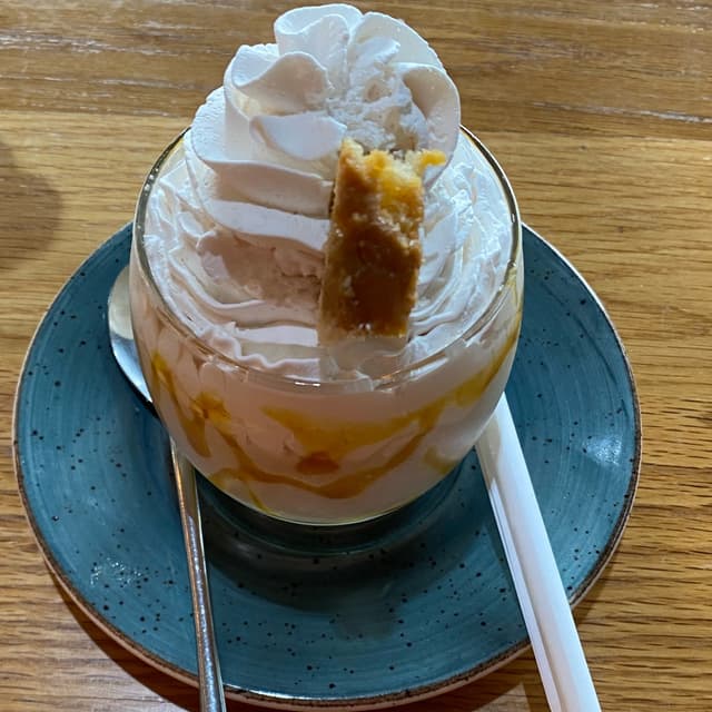 Loved the generous amount of cream and the malva pudding topping. The milkshake was not too sweet but creamy and satisfying. This was the kids size milkshake. #milkshake