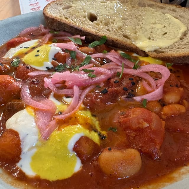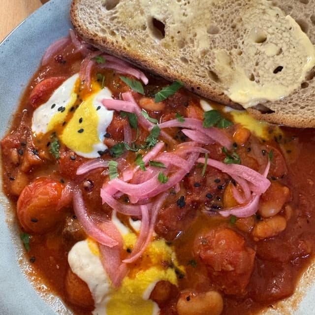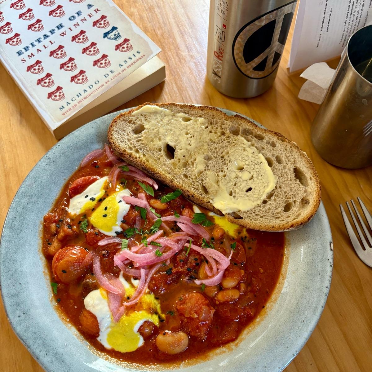 You can also request add-ons if you like, but even eoin its own there’s a lot going on with this dish. So good. Part of their spring menu, be sure to visit them throughout the year to enjoy their ever-changing menu! #shakshuka #beans #butterbeans #aubergine #auberginelover #brunch #veganbrunch #harissa