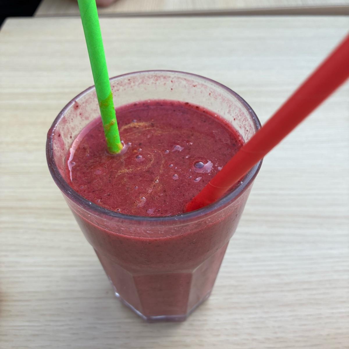 We built this one with banana and berries. I can’t remember if there was something else, it’s been a few days since we tried it. But it was nice.