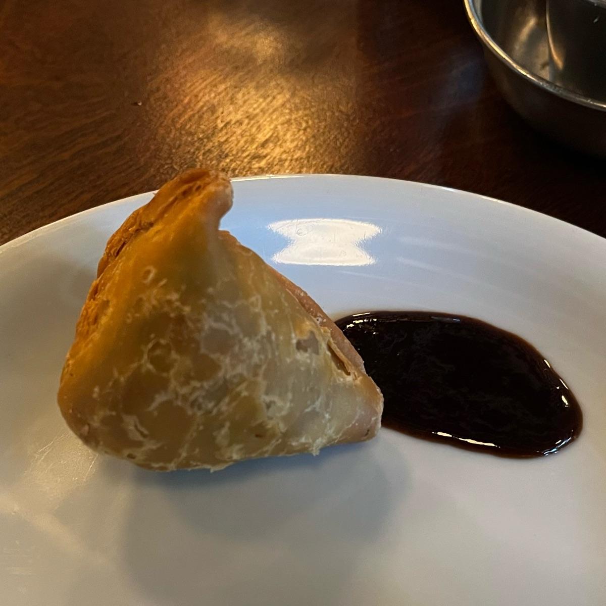 This variation on the usual oily, deep fried #samosa was very nice - a short crust pastry packed with potato and peas and infused with cinnamon. It’s accompanied by tamarind sauce.