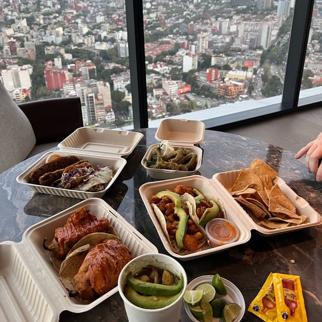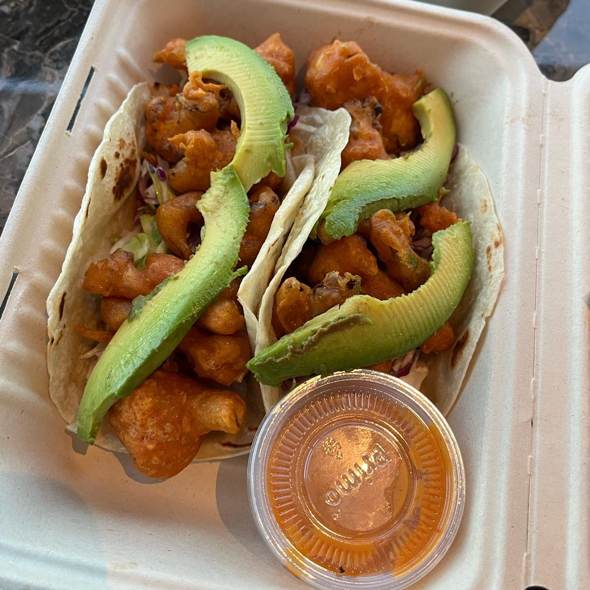 Crispy breaded #cauliflower on a bed of cabbage and carrot mix, #avocado, and #chipotle vegan sauce on a flour tortilla... yummy! This was probably my favourite dish together with the jalapeño tacos. We ordered this to our hotel and so I have a nice #reviewwithaview 🇲🇽