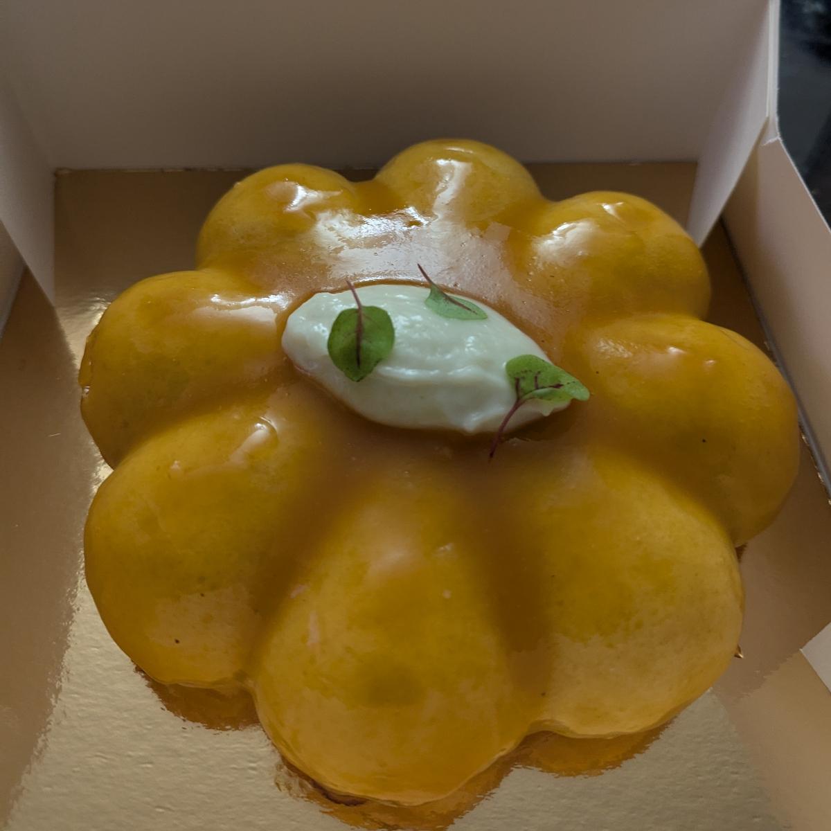 Pastel de sabor delicado a albaricoque, textura ligera de mousse, con relleno de trocitos de albaricoque. Punto perfecto de dulzor.