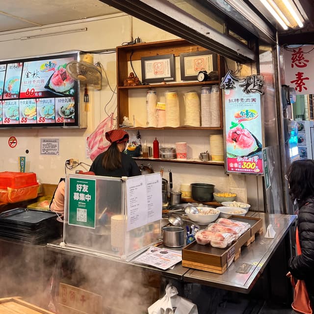 ⚠️ Important to note that Jinzhi has both **fully-vegan** and **fully non-vegan** outlets along Jiufen Old Street! Please make sure to ask the staff before proceeding to dine-in. A standout #vegan restaurant nestled in #Jiufen Old Street, is a must-visit for those exploring the vibrant culinary scene of the area. The star of their menu is undoubtedly the signature 'ba wan,' a unique dumpling that boasts a disk-shaped form, translucent appearance from sweet potato starch, and a delectable filling, served with a perfect balance of sweet and savory sauce. Traditionally containing a mixture of pork, bamboo shoots, and shiitake mushrooms, Jinzhi's vegan adaptation skillfully replaces the pork with a plant-based alternative, preserving the desired chewiness and bite. A visit to the restaurant provides a fascinating spectacle as the kitchen crew diligently prepares the ba-wan in large batches, steaming them right at the shop front. In addition to the ba-wan, Jinzhi offers another culinary delight in the form of homemade meatballs, crafted from a medley of vegetables, mushrooms, and soy, served in a clear soup. The soups and meatballs, while distinctively milder in flavor compared to the ba-wan, showcase the restaurant's commitment to providing a diverse and satisfying vegan dining experience. Overall, dining at Jinzhi is a delightful journey for the taste buds, offering a unique blend of traditional flavors and modern, plant-based innovations. Highly recommended for both vegans and non-vegans alike. #bawan#taiwanese
