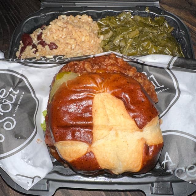 Just what you’d want in a mac and cheese from a vegan soul food restaurant. Perfectly cooked pasta with a wonderfully creamy cheese sauce that had just the right hint of spicy to add another layer of flavor. Classic vegan comfort food done right!