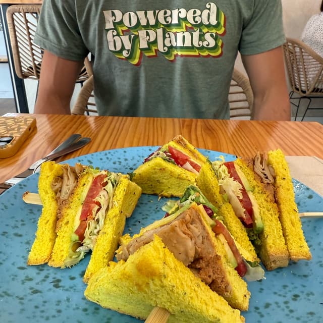 Ryan Leys1,477 reviewsAwesome homemade #turmericbread topped with veggies and delicious #seitan. #jenandryesagavemoonSandwich Veggie