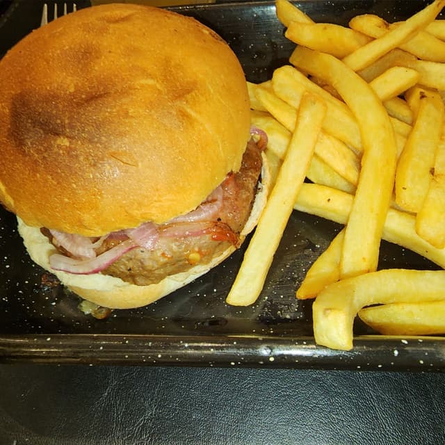 Increíble el gusto que tiene esta hamburguesa. Bien para cerrar ogts especistas. Peeeeeeeeero, poneme un cheddar, condimentos etc 15 lucas y viene con papas Ahora si te parece caro, que joraca esta barato en este país bananero?? Encima este lugar tiene pizzas, faina copada, una ensalada especial. Y la atención me encantó. Alejado del manicomio del patio de comidas. Dic 24